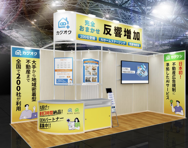 当日は南1ホール入り口すぐ(ブース番号 A3-12)のブースで、12名の専門メンバーが、不動産事業者向けのAI空室写真加工サービス「カグオク」「カグケシ」の最新事例や導入効果をご紹介します。