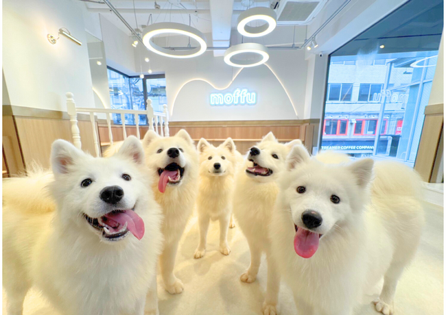サモエドカフェmoffuは、「第二の家」をコンセプトに、もふもふのサモエド犬たちと過ごせる体験型カフェです。都内・原宿で多くのお客様にご愛顧いただき、SNSでも「癒される」「天使のように可愛い」と話題を集めてまいりました。