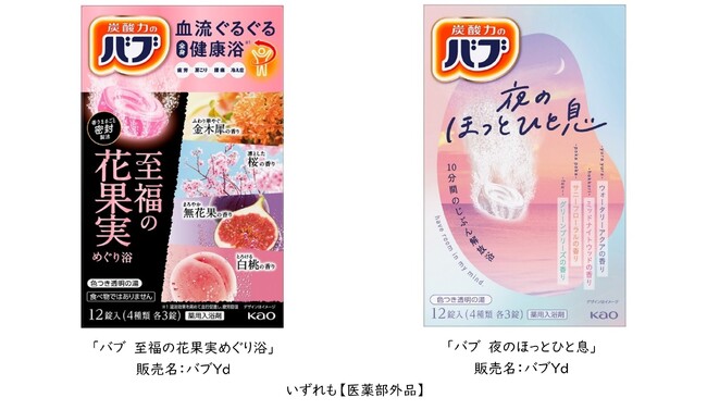花王「バブ」香りアソートシリーズから、人気の香りを集めた「至福の花果実めぐり浴」と“10分間のじぶん解放浴” 自然の中にいるような香りの「夜のほっとひと息」が新登場!