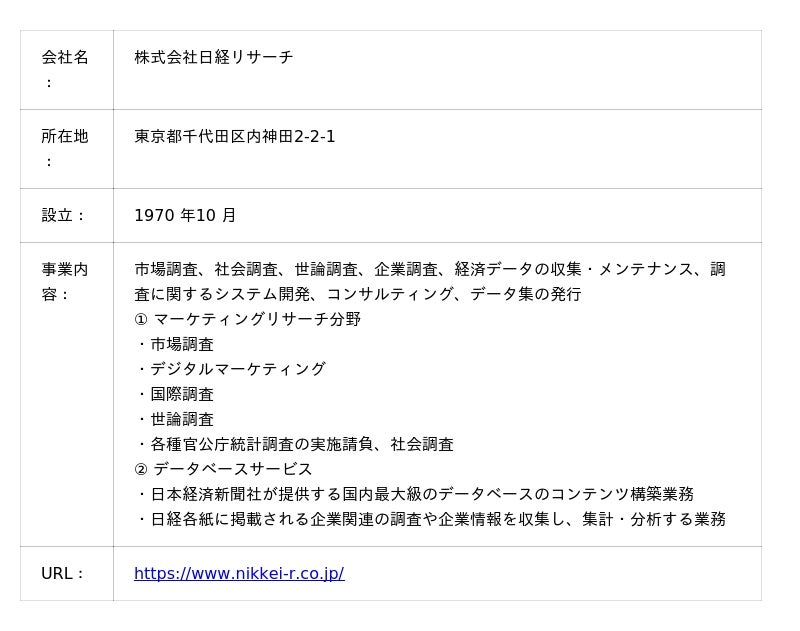 プレスリリース発表元企業:日経リサーチ