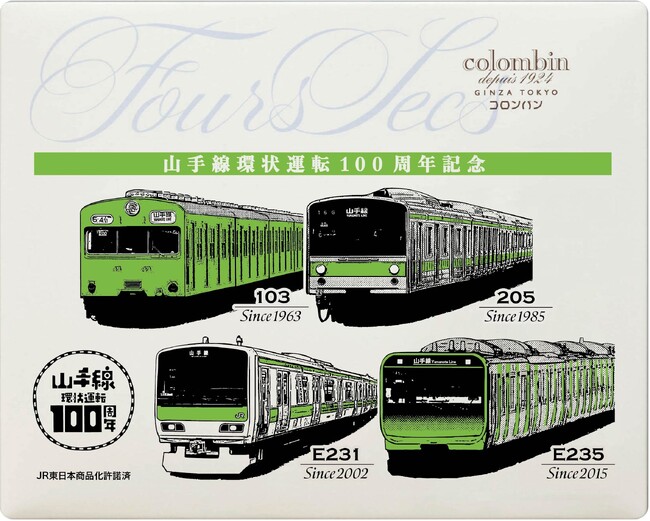 JR駅構内でショップの展開やお土産菓子の納品を行う株式会社コロンバン(本社:東京都渋谷区、代表取締役社長:小澤 俊文、以下:コロンバン、URL:https://www.colombin.co.jp/ )は、2025年11月1日に山手線が環状運転100周年を迎えることを記念して、「山手線環状運転100周年記念フールセック」を同日より数量限定で販売いたします。長きにわたり多くの人々の足となってきた山手線の歩みを、歴代車両が描かれた特別なパッケージで表現しました。JR駅構内のショップやコンビニエンスストアなどでご購入いただけます。
