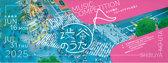 当社が発起人として推進している「FROM STREET PROJECT」は、2025年6月16日~7月31日に音楽コンペティション「渋谷のうた2025」(以下、本コンペティション)を開催しました。このたび厳正なる審査の結果、グランプリ(1曲)、準グランプリ(2曲)、SHIBUYA109特別賞(2曲)の受賞作品が決定しましたことをお知らせします。