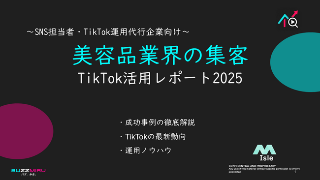 TikTok分析ツール 「BUZZMIRU」を販売する株式会社Isle(本社:東京都新宿区、共同代表:西森大祐・成宮邦亮)は、美容業界のSNSご担当者さま向けに 『2025年版 TikTokトレンドレポート』 を無料公開しました。