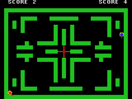 君はタンクを操縦しつつ誘導弾で敵を撃破しなければならない。誘導弾は君の操縦するタンクの向きに誘導されて飛んでいく。弾ばかり気にしていると・・・・・・。ほらほら、自分の撃った弾に当たっているのは誰だ? 2人で遊べば、気分はもう戦場。興奮しすぎて喧嘩しないように。(1、2人用)