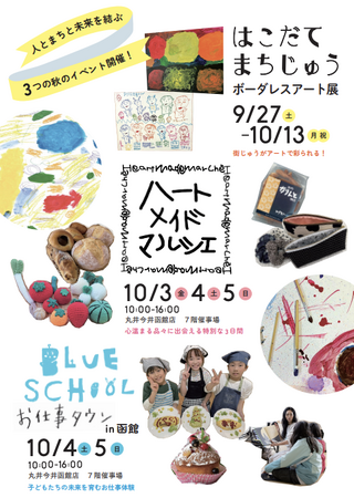 函館の秋を彩る3つのイベント「ハートメイドマルシェ」(第4回 障がい者施設のマルシェ)に加え、 「まちじゅう美術館」「おしごと体験」が初開催