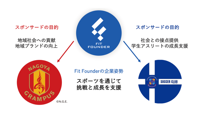 Fit Founderは、すでに名古屋グランパスのゴールドパートナーとしてプロスポーツをサポートしています。今回の大学サッカー部との取り組みにより、J1トップクラブから学生アスリートまで幅広く支援することで、スポーツを通じた地域の活性化に貢献してまいります。