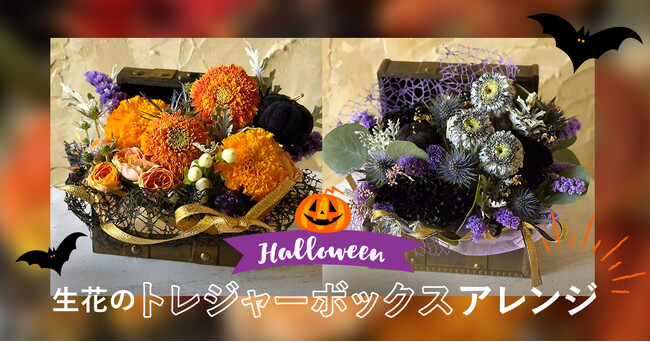 その中でも人気の高い「トレジャーボックスアレンジ」に、季節限定のハロウィンカラーが新登場しました。秋の訪れを感じさせる遊び心あふれるアレンジは、お祝いシーンや”推し活”をより華やかに楽しく彩ります。