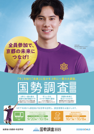 京都府総合政策環境部企画統計課(以下、京都府)では、京都府にお住まいのすべての世帯に対し国勢調査へのご協力をお願いするため、京都出身のバレーボール選手:高橋藍さんを起用した広報を展開中です。