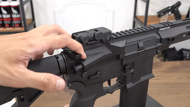ホップアップ調整が簡単!Predatorシリーズは、チャージングハンドルを引くことによってエジェクションボードカバーが解放、ボルト部分が後退した位置で待機し、ホップアップ調整が簡単に行えます。