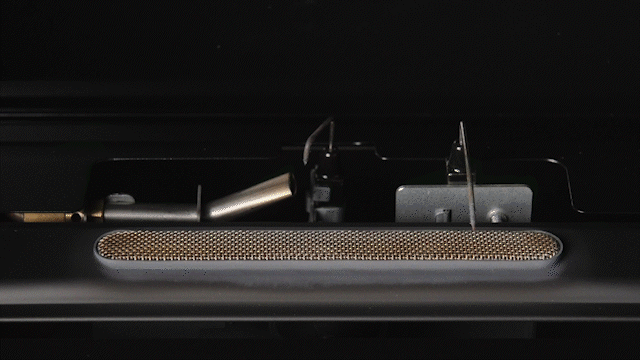 特許出願中の燃焼構造により、焚火の炎のゆらぎをイメージした、柔らかく美しい炎を実現。暖房機ではありませんが、じんわりと心地よい暖かさが伝わります。