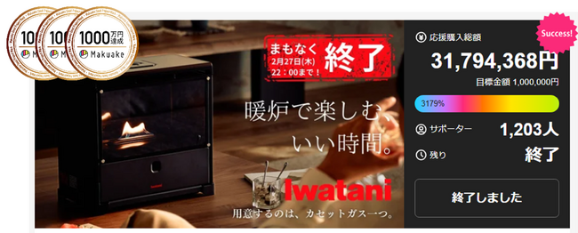 岩谷産業株式会社(本社:大阪・東京、社長:間島寬)は、カセッ トガス式で手軽に暖炉の雰囲気が楽しめる新商品「炎を楽しむインテリア暖炉 “MYDANRO”」(メーカー希望小売価格:税込 39,800 円)の一般販売を、既存色ブラックに加え新色アイボリーをラインアップに追加し、2025年9月17日より開始しました。なお、本商品はアタラシイものや体験の応援購入サービス「Makuake(マクアケ)」にて先行販売を実施しており、応援購入総額は3,000万円を達成いたしました。