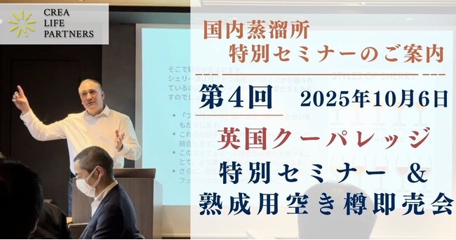 2025年10月6日(月)、新宿西口にあるBAR FIVE Arrowsにて、株式会社クレア・ライフ・パートナーズ(Dear WHISKY運営企業)は「第4回:英国クーパレッジ特別セミナー&熟成用空き樽即売会」を開催いたします!