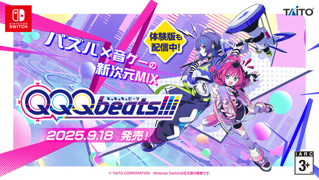 株式会社タイトー(本社:東京都新宿区、以下タイトー)は、Nintendo Switch(TM)ダウンロード専用ソフト『QQQbeats!!!』(読み:キュキュキュビーツ)を、ニンテンドーeショップにて本日9月18日(木)に発売いたしました。また、同日より体験版の配信も開始しております。