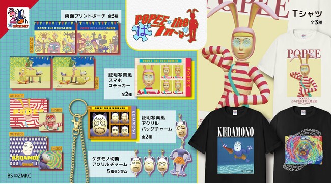 伝説のCGアニメ「ポピーザぱフォーマー」より、インパクト抜群のTシャツや「ケダモノ」切断アクリルチャームなど、作品の魅力が詰まったグッズが新登場!