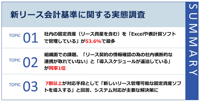 今回の調査では、2027年4月の強制適用を控えた新リース会計基準への対応において、多くの企業が準備の必要性を認識しながらも、システム改修や組織体制の整備に課題を抱えていることが明らかになりました。デジタル化が進む現代のビジネス環境において、従来のExcelベースの管理から、より高度なリース管理システムへの移行が急務となっています。特に、社内横断的な連携不足や専門人材の不足といった組織的な課題が浮き彫りになり、単なるシステム導入だけでなく、包括的な組織変革が求められています。企業が適切な準備期間を確保し、専門的な知識とシステム対応力を備えたソリューションを活用することで、新基準への円滑な移行と継続的な資産管理の高度化を実現できるでしょう。