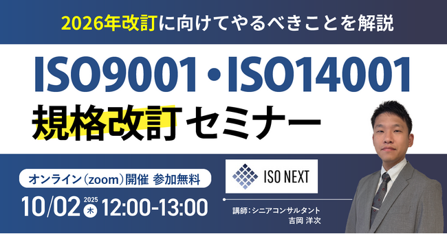 【10/2(木)12:00-13:00 オンライン開催】いま知っておきたい!ISO9001・14001 ── 2026年規格改訂と対応の第一歩