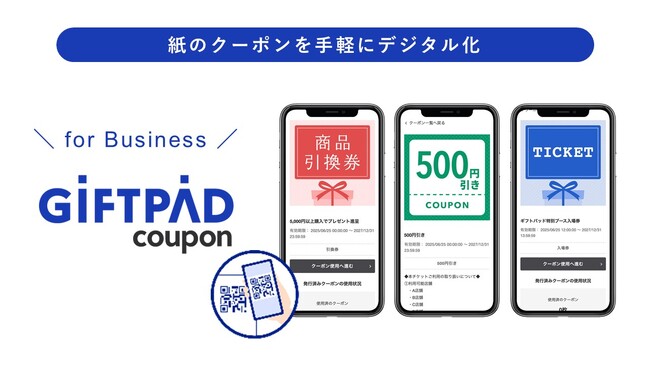 なお、『Giftpad coupon』は、これまで自治体向けの給付金・還元事業においても活用されてきた実績があり、住民サービスの向上と自治体業務の効率化を両立するツールとしてご利用いただいてまいりました。今回、法人向け提供開始はそうした公共分野での運用経験をもとに、企業の多様な課題解決に向けて展開するものです。