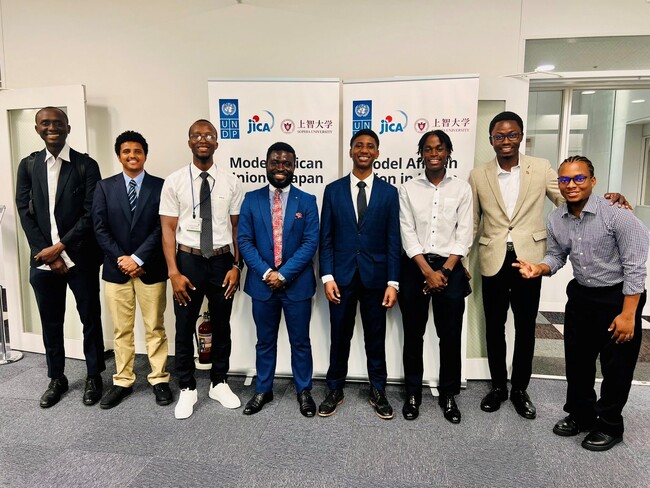 加えて、私たちは2025年8月20日(水)(TICAD 9サミット初日)に開催された模擬アフリカ連合(MAU)にも参加しました。MAUでは、MAYANJA Iddi Harunaがセーシェルの首席代表として(写真1)、MOLLEL Frank Francisがタンザニアの首席代表として参加しました(写真2)。MAUでは、日本の大学生がアフリカの国の中から「大臣役」や「代表」を務めたい担当国を選んで応募し、書類選考を経て代表者が確定します(写真3)。今年のセッションのテーマは、「Inayojumuisha: 若者の共創、アフリカの未来を形作る」でした。日本とアフリカの若者の代表者たちと共に、若者がアフリカの開発を形作る上でいかに積極的な役割を果たせるかについて意見交換を行いました。