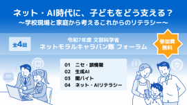 生成AIの急速な進展により、SNS上では偽・誤情報の拡散や、人物の顔をすり替えたディープフェイク映像の作成が、誰にでも容易に可能となっています。これらは、誹謗中傷や人権侵害といった深刻な被害を引き起こす要因となっており、青少年はこうした「見えにくいリスク」に日常的にさらされています。一方で、こうした技術の実態や情報拡散のメカニズムについては、大人でも十分な理解が進んでいないのが現状です。こうした社会的背景を踏まえ、本シンポジウムでは、生成AIの浸透に伴う偽・誤情報やSNSをめぐる新たな社会課題について、具体的な事例をもとに理解を深める機会を提供します。