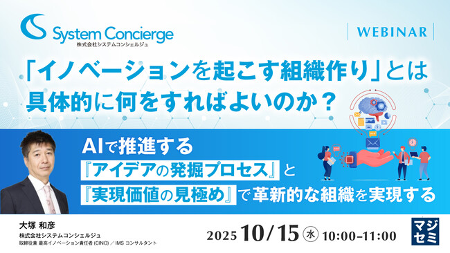 マジセミ株式会社は「「イノベーションを起こす組織作り」とは、具体的に何をすればよいのか?」というテーマのウェビナーを開催します。