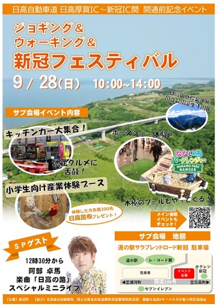 【9/28(日)】日高自動車道 日高厚賀IC~新冠IC間 開通前記念イベント「ジョギング&ウォーキング&新冠フェスティバル」開催