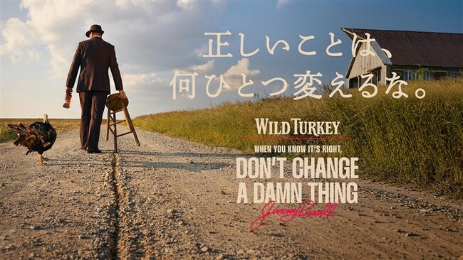 このキャンペーンは、ワイルドターキーが米国の禁酒法以前から100年以上にわたり守り続けてきたレシピと製法、そしてブランドの揺るぎない信念を映像化したものです。流行が目まぐるしく変化する現代において、ワイルドターキーは「正しいということが分かっているなら、些細なことであっても何ひとつ変えてはならない」という哲学を貫き、流行とは一線を画す存在であり続けています。これはワイルドターキー蒸溜所にて70年以上にわたる経験を持つマスターディスティラー(蒸溜責任者)、ジミー・ラッセルがウイスキーづくりの中で得た発見であり、至った境地であります。
