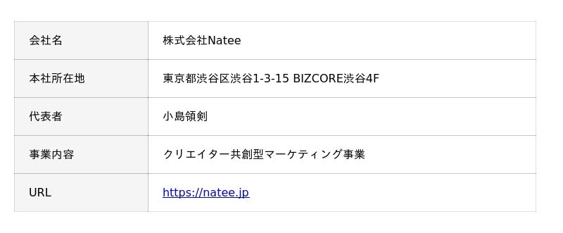 Nateeは「人類をタレントに。」をミッションに掲げ、個人をエンパワーメントし産業構造の変化を起こす事業を創造する会社です。SNSに特化したクリエイター共創型マーケティング事業では、ブランドとクリエイターの世界観をかけ合わせた「共創型」のプロモーション施策を提供しています。