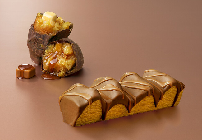 香ばしい蜜芋バターのバームクーヘンに、こっくりキャラメルショコラをとろり