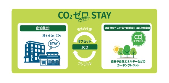 株式会社JTBコミュニケーションデザイン(本社:東京都港区、代表取締役 社長執行役員:藤原卓行、以下JCD)は、2023年3月1日より、ホテルや旅館などの宿泊施設向けに、CO2排出相当量をカーボン・オフセットできる「CO2ゼロSTAY(R)」のサービスを提供しています。