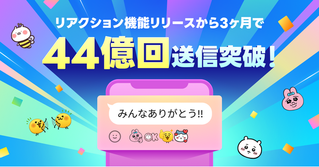 LINE、トークのリアクション新機能リリース後3ヶ月でリアクション送信数が累計44億回を突破!