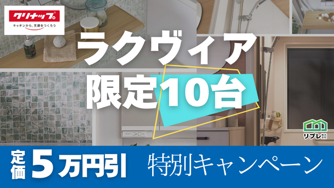リプレ株式会社(本社:大阪市中央区、代表:古川 賢)は、クリナップのシステムバス「rakuvia(ラクヴィア)」を対象とした、特別キャンペーンを実施いたします。