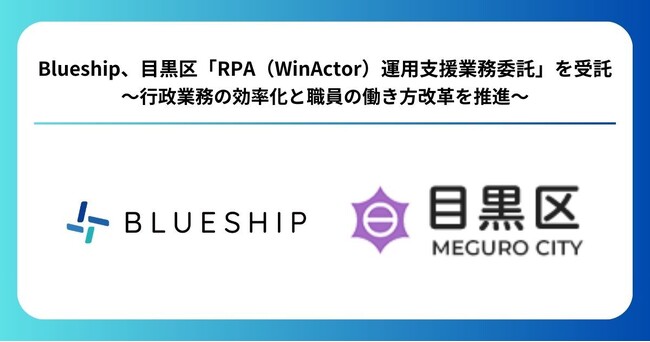 株式会社Blueship(本社:東京都渋谷区、代表執行役:杉崎恵悟、以下当社)は、目黒区が公募型プロポーザル方式により募集していた「RPAツール(WinActor(R))における運用支援等業務委託」を受託したことをお知らせいたします。