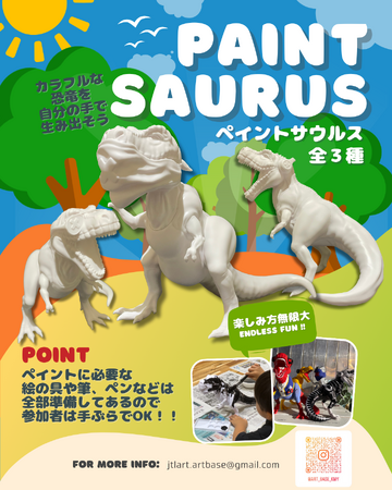 「PAINT SAURUS」は、真っ白な恐竜フィギュアを“キャンバス”に見立て、参加者が自由に色を塗り完成させる体験型アートワークショップです。