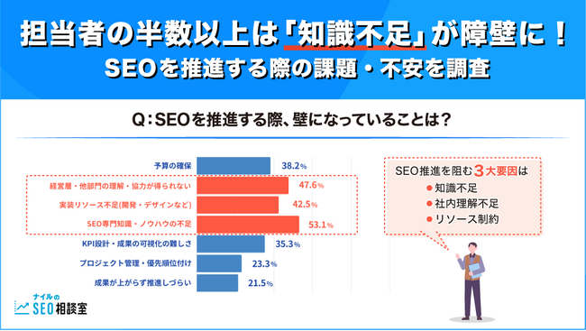 SEO推進を阻む三大要因は「知識不足」「社内理解不足」「リソース制約」