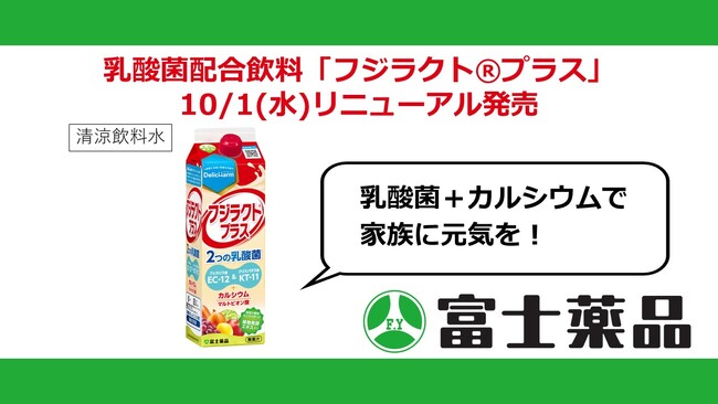 乳酸菌配合飲料「フジラクト(R)プラス」10/1(水)リニューアル発売