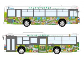 子どもたちが描いたラッピングバスの試乗会を実施します。
