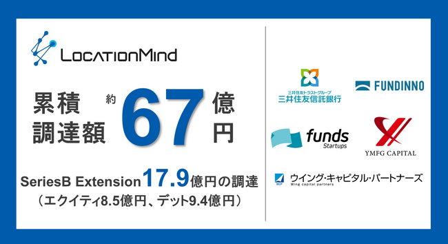 東京大学発、地理空間AI企業であるLocationMind株式会社(本社:東京都千代田区 代表取締役:桐谷直毅、以下LocationMind)はシリーズB総額49.6億円の資金調達を完了しました。これにより、創業からの累計資金調達額は約67億円となります。