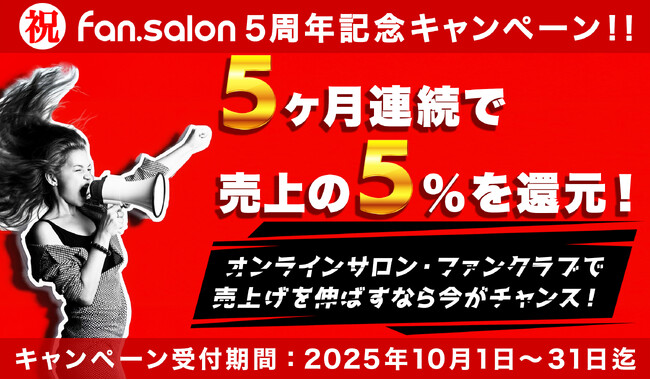 “LINE”の中で自分だけのファンクラブ・オンラインサロン・サブスクサービスを作ることができる『fan.salon』が5周年記念キャンペーンを実施!