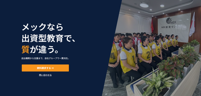 このページでは、送出機関の教育内容や教育方針はもちろん、メックグループがこの送出機関を選定した理由、送出機関選定のポイントについても紹介しています。[画像2: https://prcdn.freetls.fastly.net/release_image/76177/150/76177-150-0c31b615e0c536fadeb57a1145951dae-3900x2600.jpg?width=536&quality=85%2C75&format=jpeg&auto=webp&fit=bounds&bg-color=fff ]