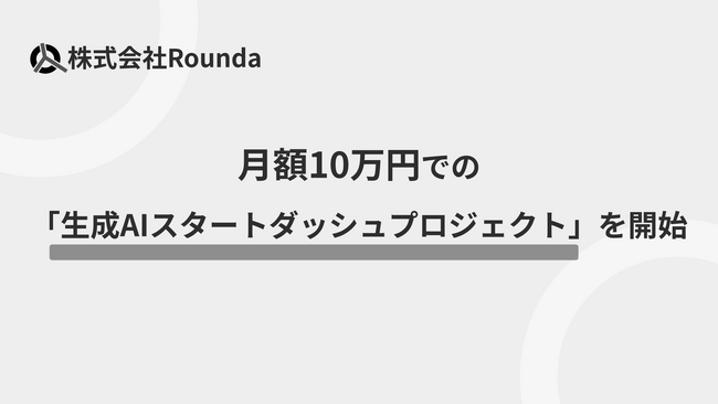 株式会社Rounda(本社:東京都渋谷区、岩田匠 代表取締役社長)は、このたび生成AI導入を手軽かつ効果的に進めるための「生成AIスタートダッシュプロジェクト」の提供開始 (2026年3月末まで) をいたしました。本プログラムでは、月額10万円で最大3か月間、ヒアリングから具体的なアクション提案までを包括的に実施し、企業や組織が生成AIの活用をスムーズに立ち上げられるよう支援いたします。