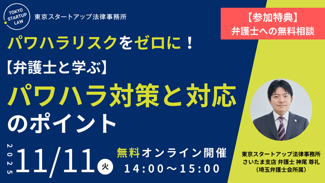「パワハラリスクをゼロに!~弁護士と学ぶパワハラ対策と対応のポイント~」を2025年11月11日(火)に無料・オンライン開催!
