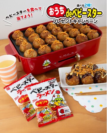 第17弾は、家族みんなのおうち時間をベビースターが演出!ベビースターラーメン・ベビースタードデカイラーメン・ベビースターラーメンおつまみシリーズ各種を対象に、ベビースターアレンジレシピも楽しめる「コンパクトホットプレート」か、およそ100cm×100cmの大判タオル「ホシオくんドデカタオル」が総計2,100名様に当たるプレゼントキャンペーンを2025年10月より開始します。