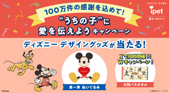 また、本キャンペーンではXでのキャンペーンも同時開催します。Brand Message「うちの子に一生の愛を」をテーマに、“うちの子”への想いをぜひご投稿ください。ご投稿いただいた方の中から、抽選で100名さまにディズニーのキャラクターをデザインした別のグッズをプレゼントいたします。どちらもぜひご応募ください。