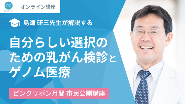 株式会社メディカルノート(東京都港区、代表取締役:小林 裕貴、以下、メディカルノート)は、毎年10月のピンクリボン月間に合わせて、乳がん診療における第一人者の一人である大阪大学大学院医学系研究科 乳腺・内分泌外科学 教授の島津 研三(しまづ けんぞう)先生による市民公開講座「自分らしい選択のための乳がん検診とゲノム医療」を開催し、動画を2025年10月1日にYouTubeのメディカルノートチャンネルで公開したことをお知らせします。