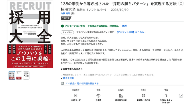 【Amazon予約開始】採用に悩む経営者必読!138の事例から導く「採用の勝ちパターン」を徹底解説した書籍『採用大全』が10月10日(金)発売!