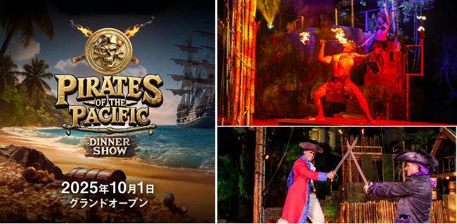 グアムで最大級のテーマパークリゾート、パシフィック アイランド クラブ グアム(PICグアム/所在地:グアム タモン 総支配人 ベン・ファーガソン)は、大型ライブアクションのディナーショー「パイレーツ・オブ・ザ・パシフィック」を2025年10月1日(水)にグランドオープンいたします。ウォーターパーク内にある専用舞台で大胆なパフォーマンスが繰り広げられる、グアムの伝統文化を織り交ぜた子どもから大人まで楽しめるグアムの新しい夜のエンターテイメントです。