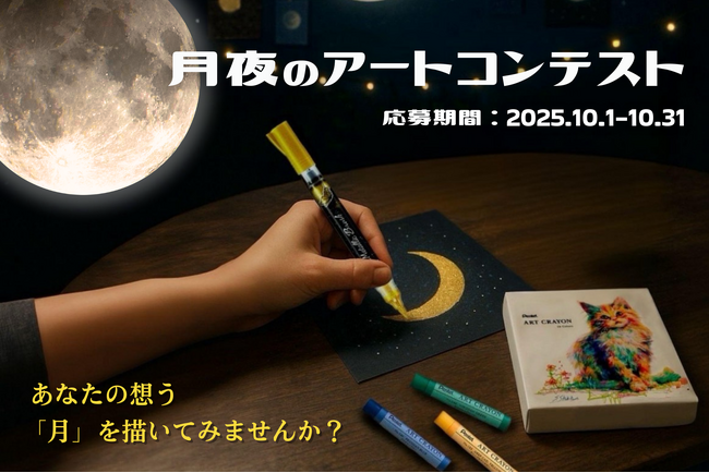 「月夜のアート体験」では、Roll Sloth × ぺんてるのコラボ企画として、“月”をテーマにしたアート 作品を広く募集しています。初心者から上級者まで、年齢・経験を問わず誰でも参加可能です。【応募方法】
