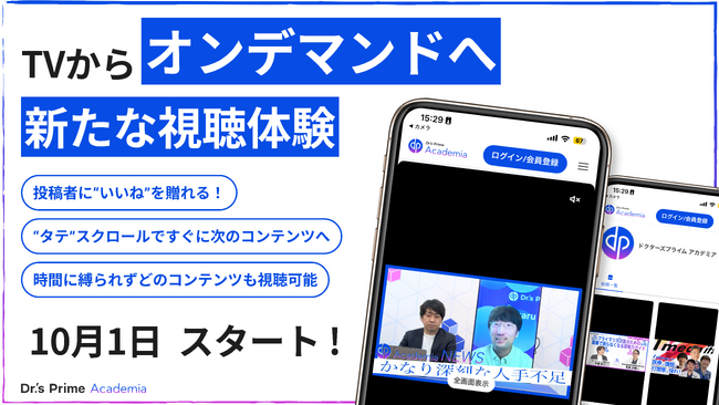 株式会社ドクターズプライム(東京都江東区、代表取締役:田真茂、以下「ドクターズプライム」)は、「Dr.’s Prime Academia(ドクターズプライムアカデミア)」において、医師・医学生専用の動画配信プラットフォームを縦型動画・オンデマンド配信形式にリニューアルしました。