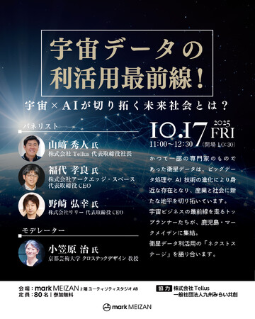 一般社団法人九州みらい共創(福岡県久留米市、代表理事:上村俊作)は、九州宇宙ビジネスキャラバン2025鹿児島の公認サイドイベントとして開催される『人工衛星データ×AIが拓く未来』トークイベント(2025年10月17日(金)・マークメイザン)に協力いたします。