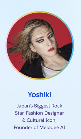 今回のセッションタイトルは「Rockstar Revolution」。YOSHIKIのチームが開発を進めてきた「AI YOSHIKI」を進化させた新バージョンを世界初公開し、人間とAIが共鳴し合う次世代のクリエイションの姿を提示する。Salesforceをはじめとする最先端テクノロジーを基盤に、アーティストに創造の主導権を取り戻させ、旧来の業界構造から解放することで、音楽の未来を根本から変革するビジョンを示す。モデレーターは、世界で最も影響力のある雑誌のひとつ、米『TIME』誌のCEOジェシカ・シブリー氏が務める。